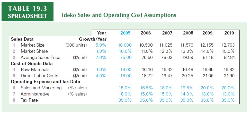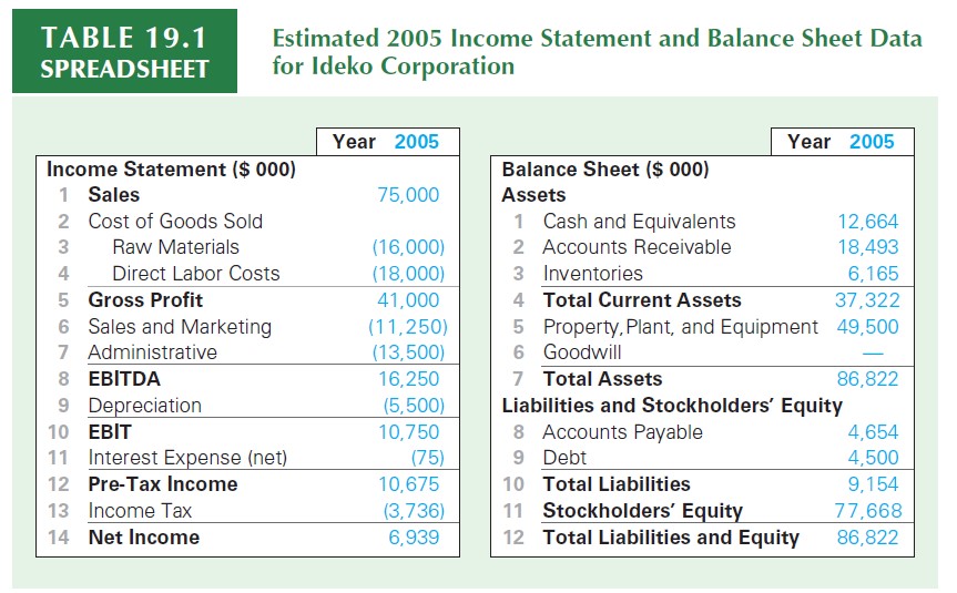 In the next set of slides, you’ll see some numbers from Ideko’s estimated balance-sheet and income statement data as of 2005, as well as some operating forecasts that will be the basis for building the financial model