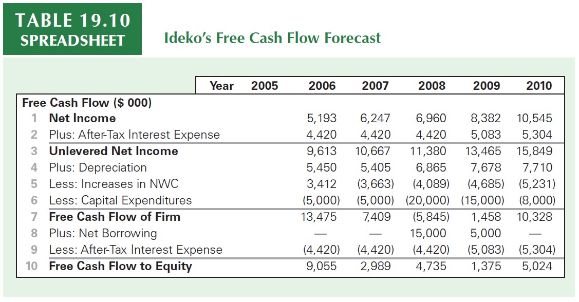 You now have the free cash flow estimates, both at the firm level (FCF) and at the equity (FCFE) level