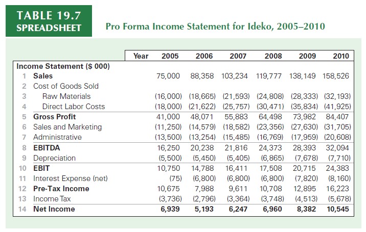 We can forecast Ideko’s income statement for the five years following the acquisition based on the operational and capital structure changes proposed